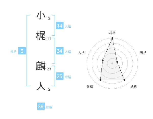 小梶 麟人さんの総格は39画の5点