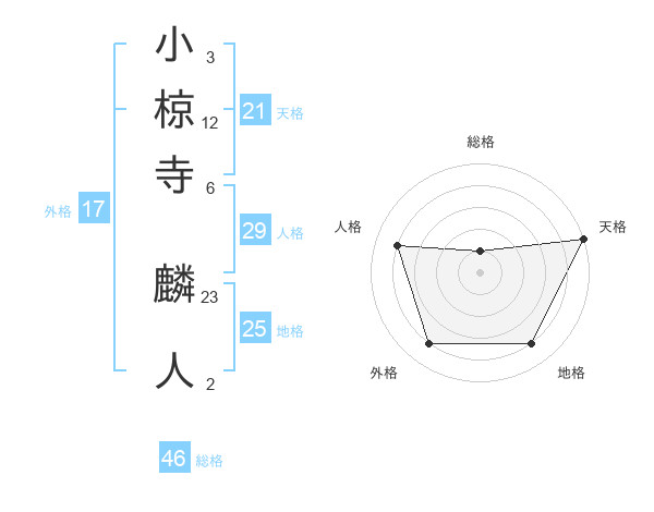 小椋寺 麟人さんの天格は21画の5点!