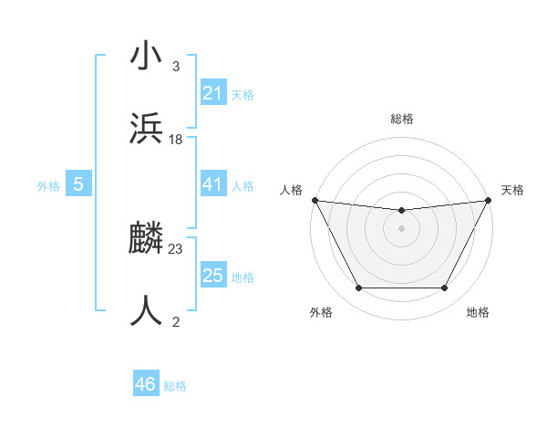 小浜 麟人さんの天格は21画の5点!
