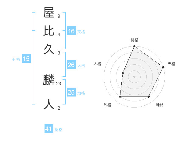 屋比久 麟人さんを姓名の画数から五運を鑑定