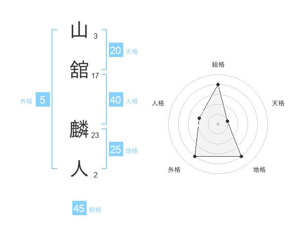 山舘 麟人さんの総格は45画の4点!