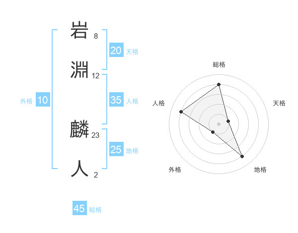 岩淵 麟人さんの天格は20画の1点!