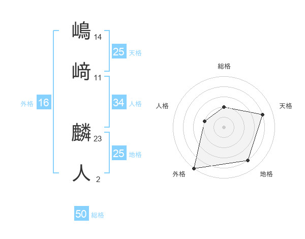 嶋﨑 麟人さんを姓名の画数から五運を鑑定