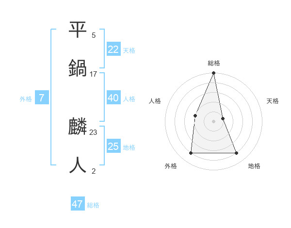 平鍋 麟人さんの総格は47画の5点!