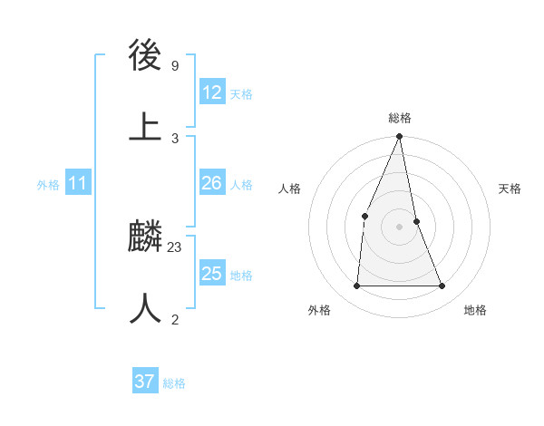 後上 麟人さんの総格は37画の5点!