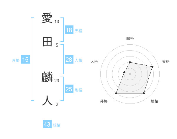 愛田 麟人さんの総格は43画の2点!