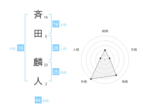 斉田 麟人さんを姓名の画数から五運を鑑定