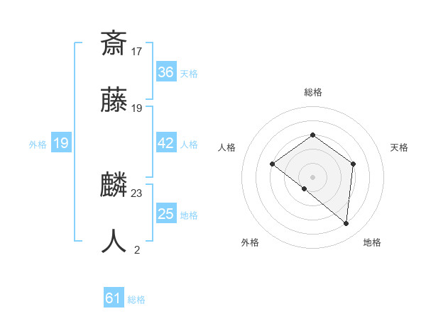 斎藤 麟人さんの総格は61画の3点!