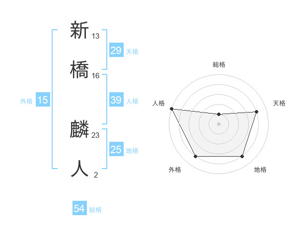 新橋 麟人さんの天格は29画の4点!