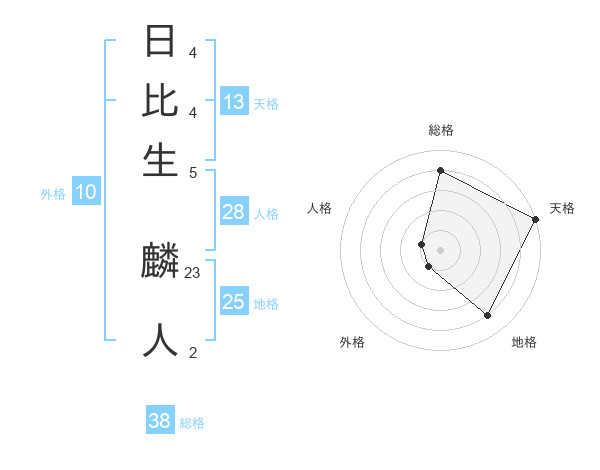 日比生 麟人さんの総格は38画の4点!