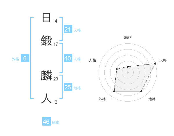 日鍛 麟人さんを姓名の画数から五運を鑑定