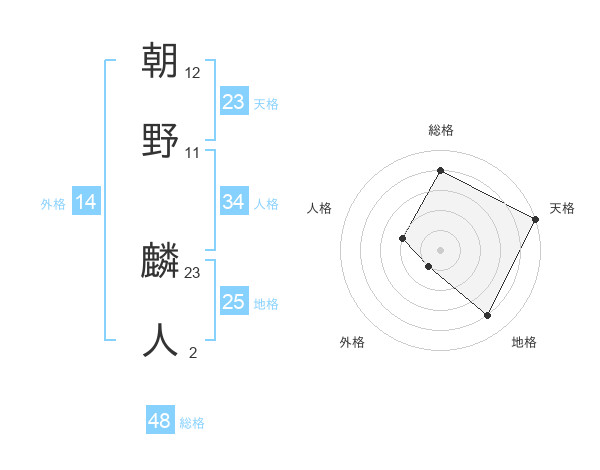 朝野 麟人さんの天格は23画の5点!