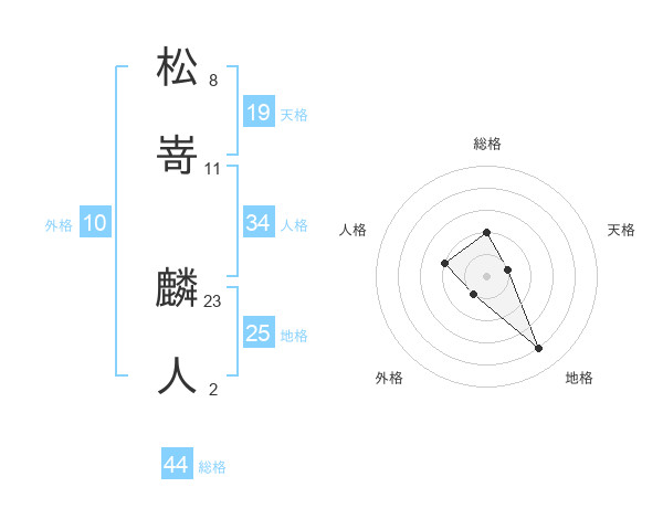 松嵜 麟人さんの総格は44画の2点!