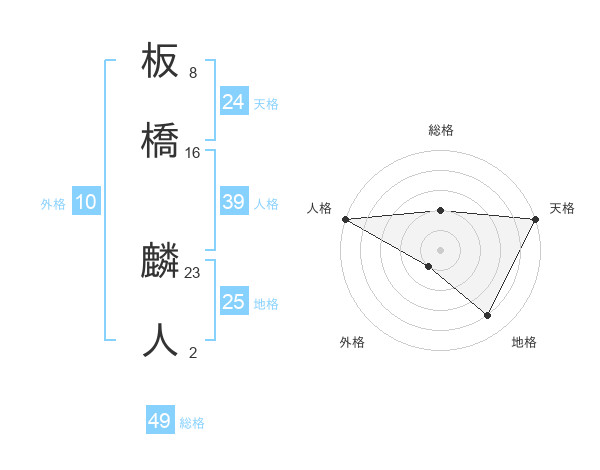板橋 麟人さんの総格は49画の2点!