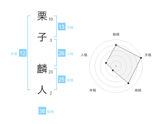 栗子 麟人さんの総格は38画の4点!