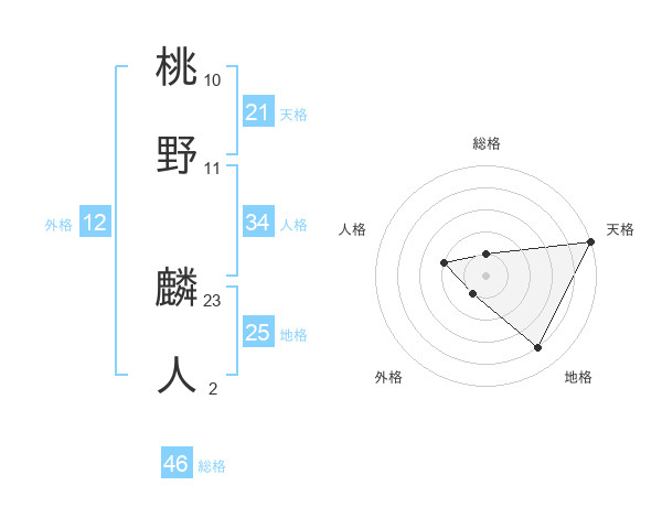 桃野 麟人さんの天格は21画の5点!