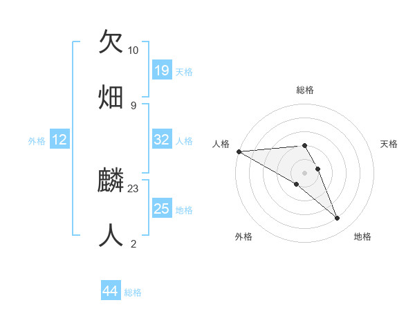 欠畑 麟人さんを姓名の画数から五運を鑑定