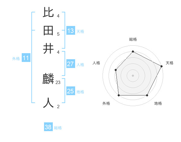 比田井 麟人さんの天格は13画の5点!