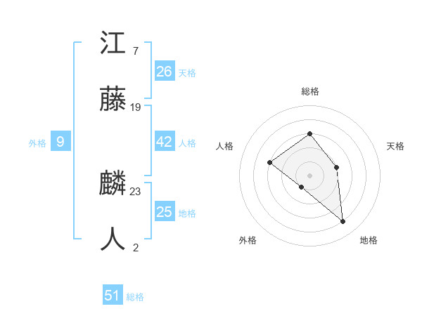 江藤 麟人さんの総格は51画の3点!