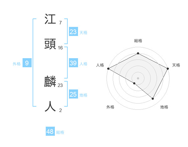 江頭 麟人さんの天格は23画の5点!