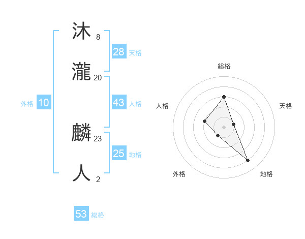 沐瀧 麟人さんの総格は53画の3点!