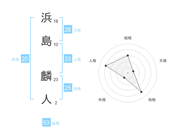 浜島 麟人さんを姓名の画数から五運を鑑定