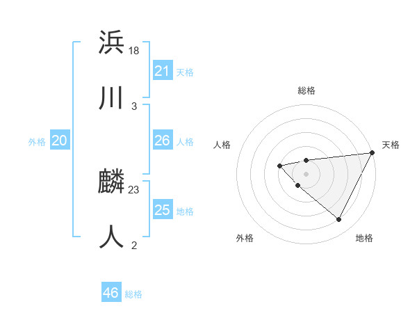 浜川 麟人さんの総格は46画の1点!
