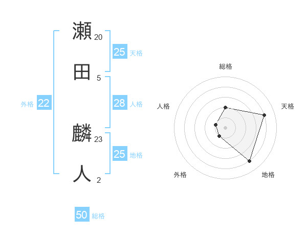 瀬田 麟人さんを姓名の画数から五運を鑑定
