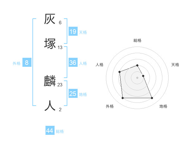 灰塚 麟人さんの総格は44画の2点!