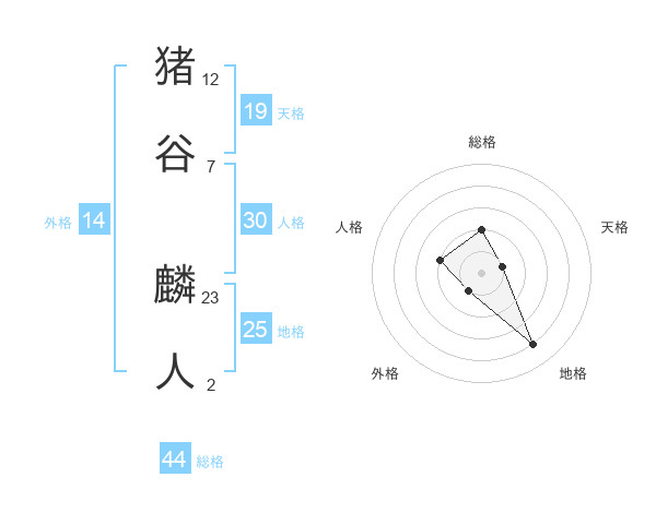 猪谷 麟人さんの総格は44画の2点!