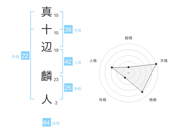 真十辺 麟人さんの総格は64画の1点!