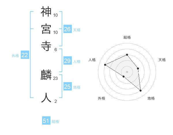 神宮寺 麟人さんの総格は51画の3点!