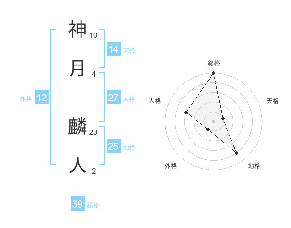 神月 麟人さんの総格は39画の5点!