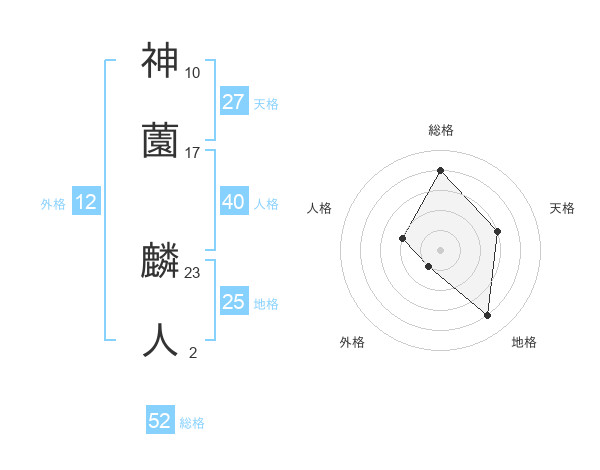 神薗 麟人さんを姓名の画数から五運を鑑定
