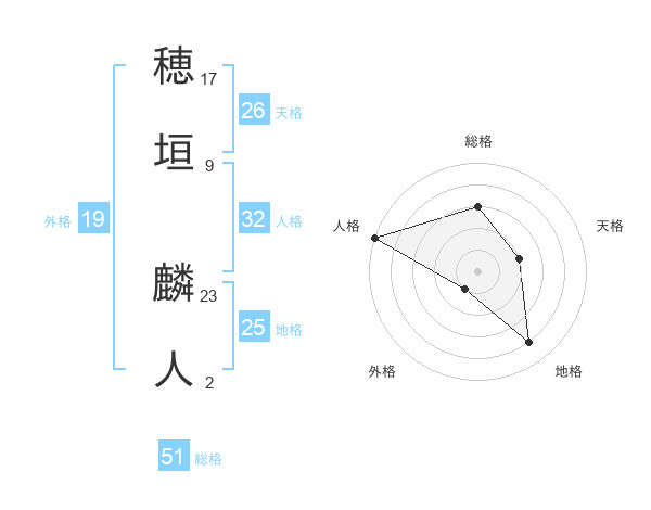 穂垣 麟人さんを姓名の画数から五運を鑑定