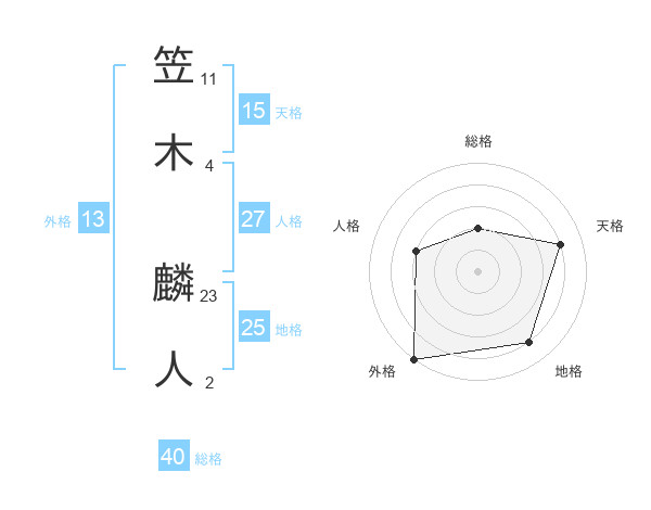 笠木 麟人さんの総格は40画の2点!