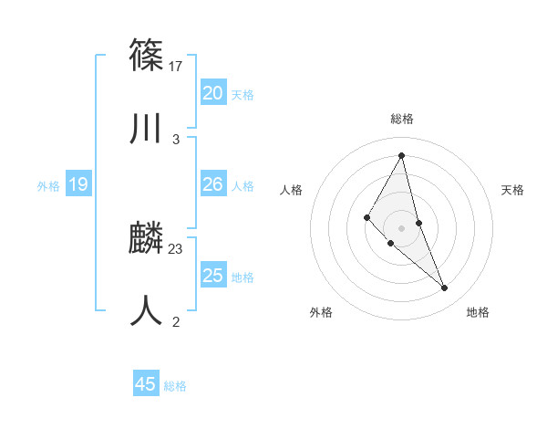 篠川 麟人さんの総格は45画の4点!