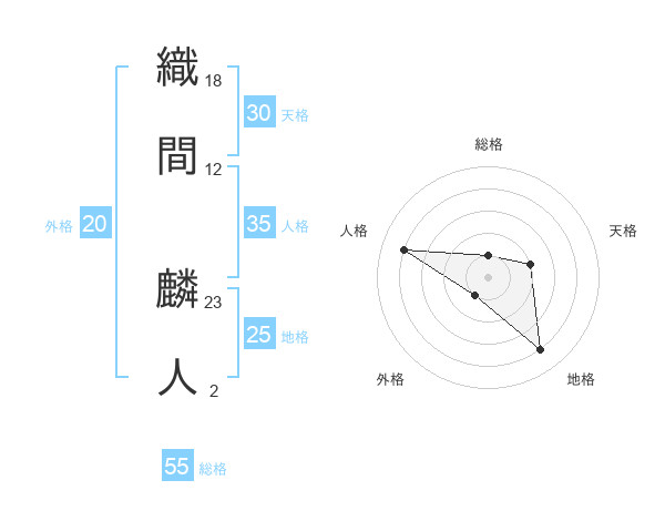 織間 麟人さんの総格は55画の1点!