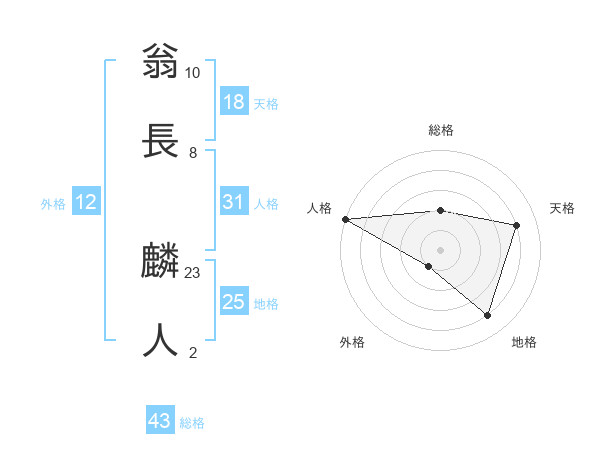 翁長 麟人さんの天格は18画の4点!