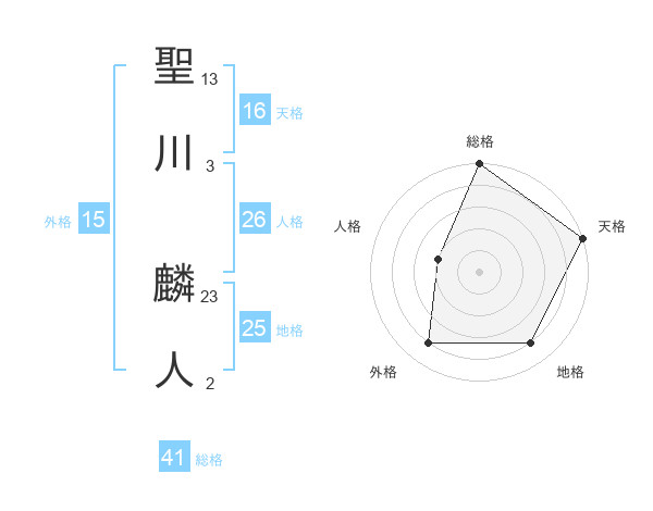 聖川 麟人さんの天格は16画の5点!
