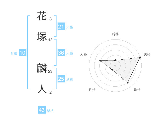 花塚 麟人さんの天格は21画の5点!
