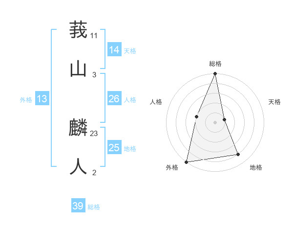 莪山 麟人さんの外格は13画の5点!