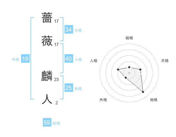 薔薇 麟人さんの天格は34画の2点
