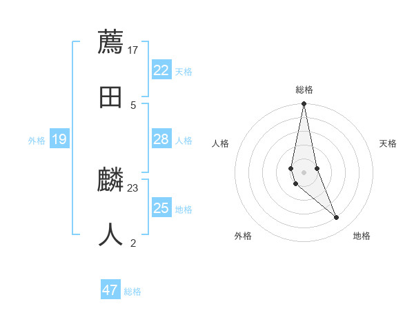 薦田 麟人さんを姓名の画数から五運を鑑定