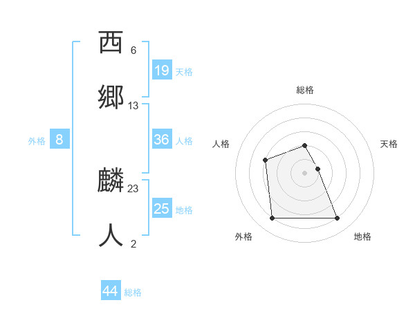 西郷 麟人さんを姓名の画数から五運を鑑定