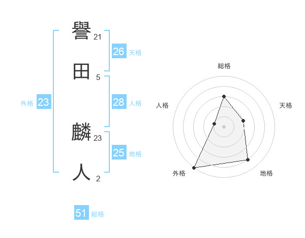 譽田 麟人さんの総格は51画の3点!