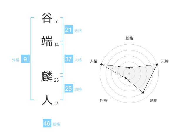 谷端 麟人さんの総格は46画の1点
