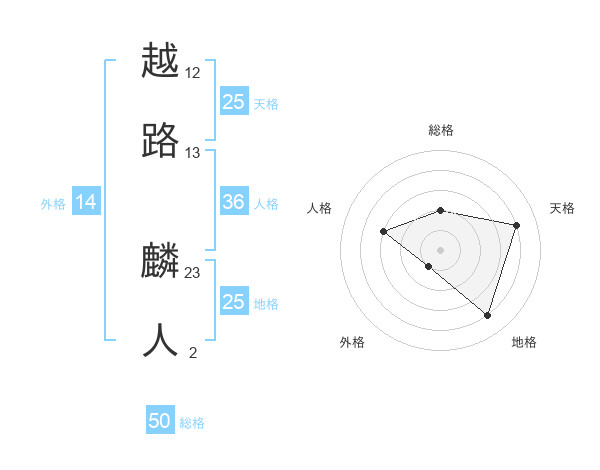 越路 麟人さんの総格は50画の2点!