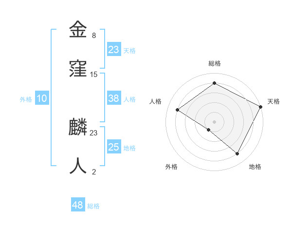 金窪 麟人さんの天格は23画の5点!