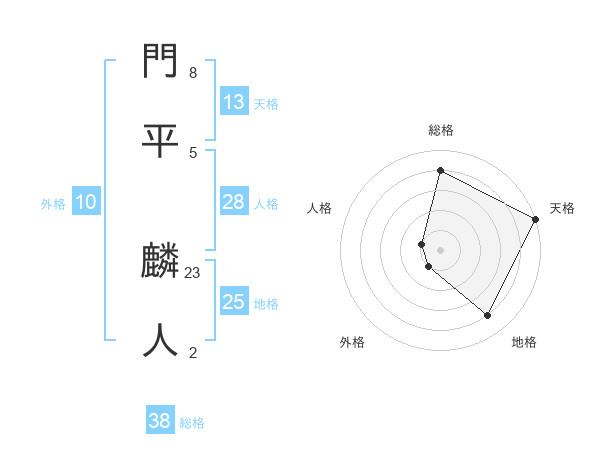 門平 麟人さんの総格は38画の4点!